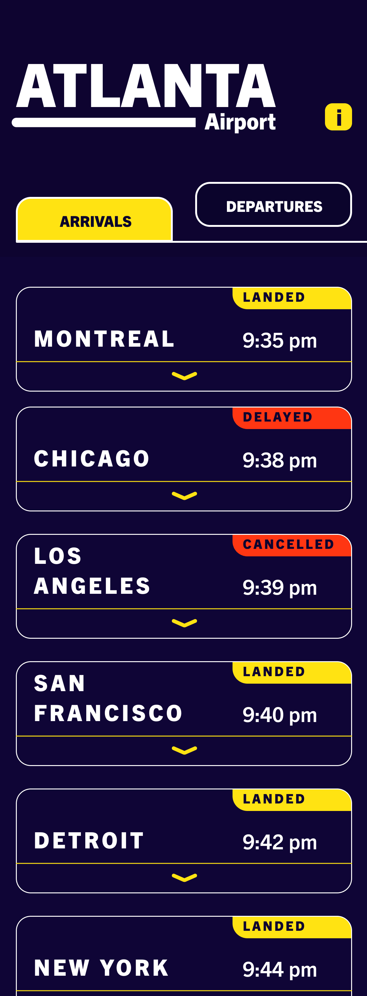 As a first-year typography project, we were tasked with trying our first attempt at interface design through Figma. By keeping in mind inclusivity and the purpose of clearly presenting directional information, I carefully constructed an app interface for the Atlanta International Airport.