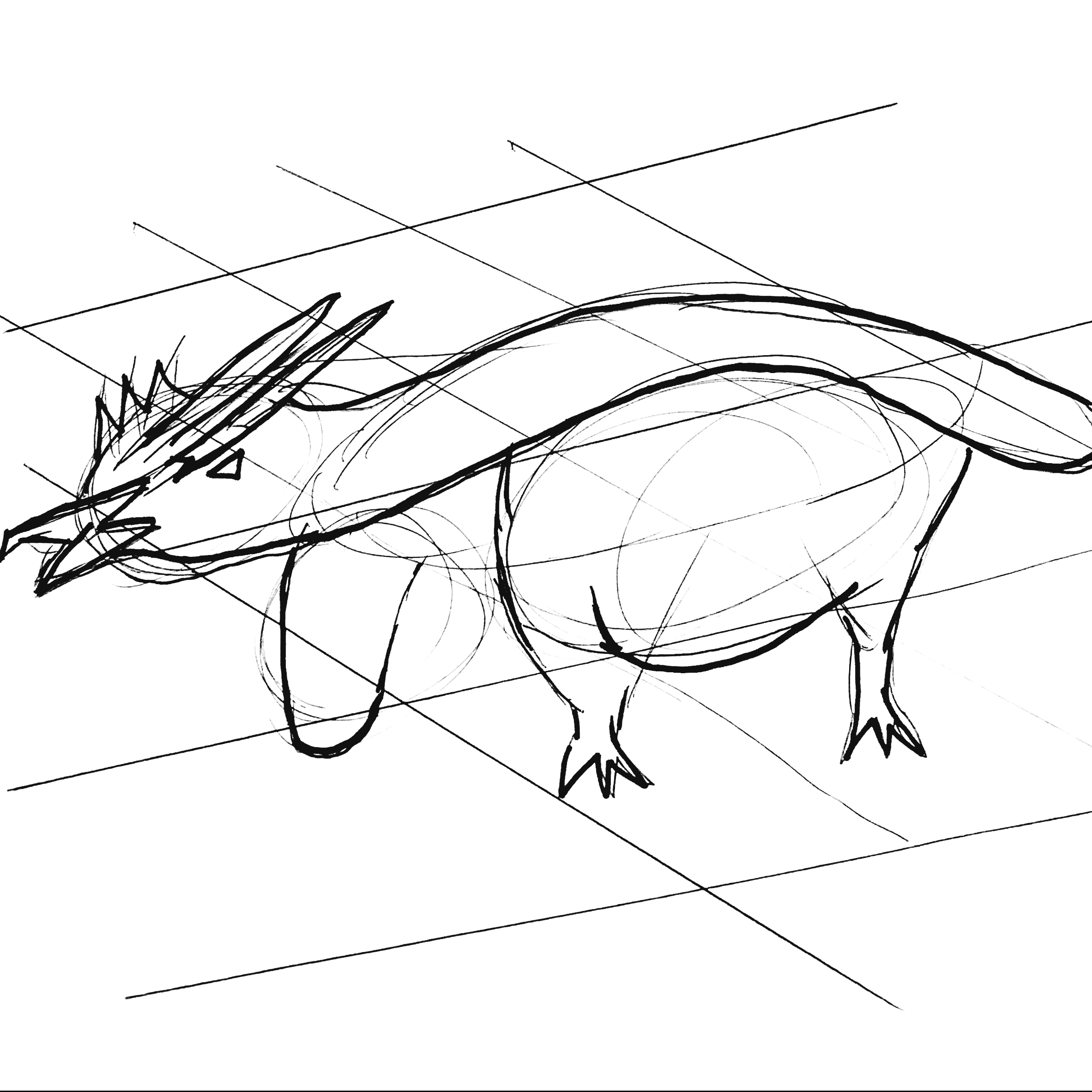 I developed a variety of digital illustrations using simple components and iterated on them until I achieved a final result that communicated what I had intended to about my selected creature for the design.