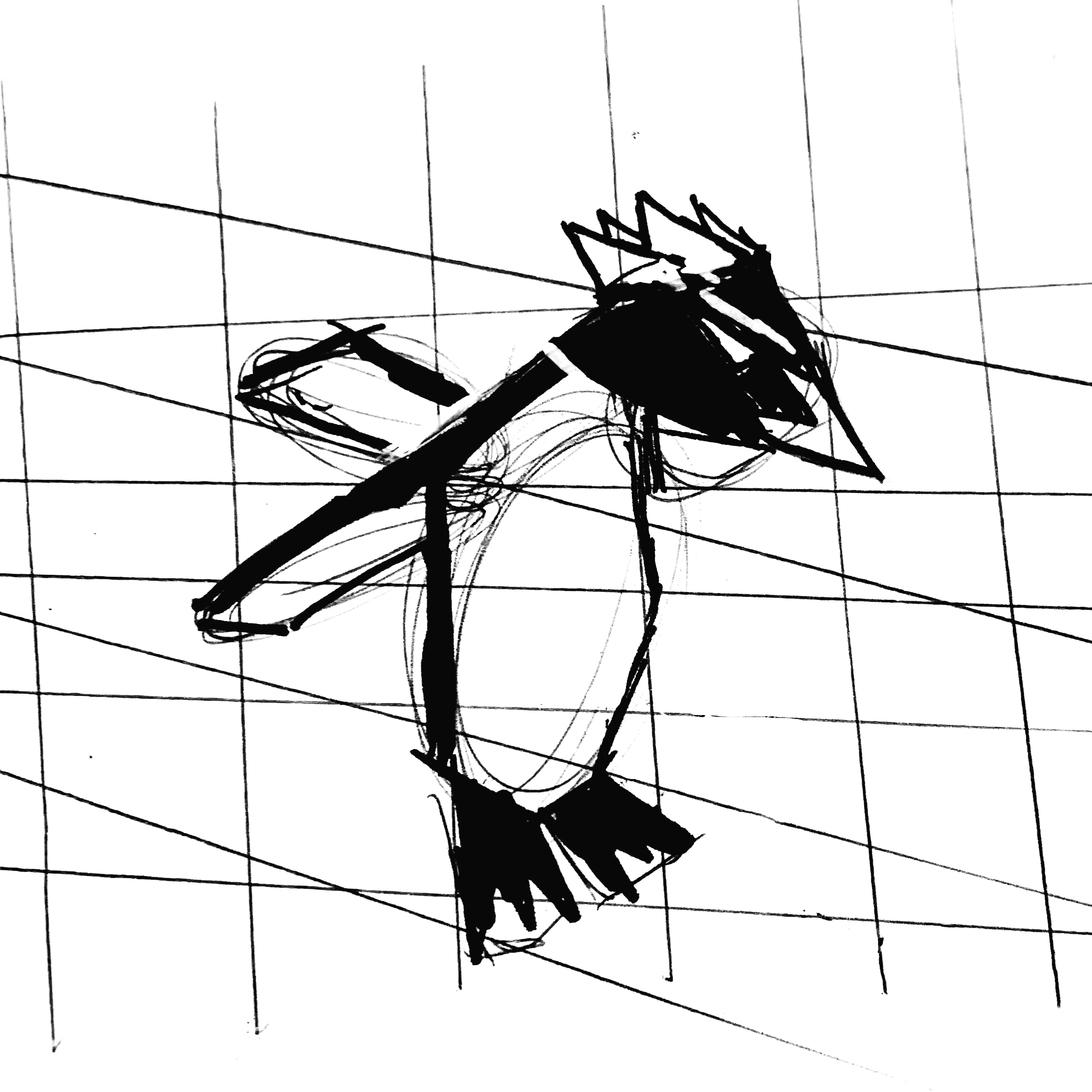 For the next stage of this process, descriptive, poetic phrases were written by a peer and were related to the chosen creature. Emphasizing the determined look in the penguin’s eye and its trail-blazing outlook on the future, this phrase was selected to make a composition based around.