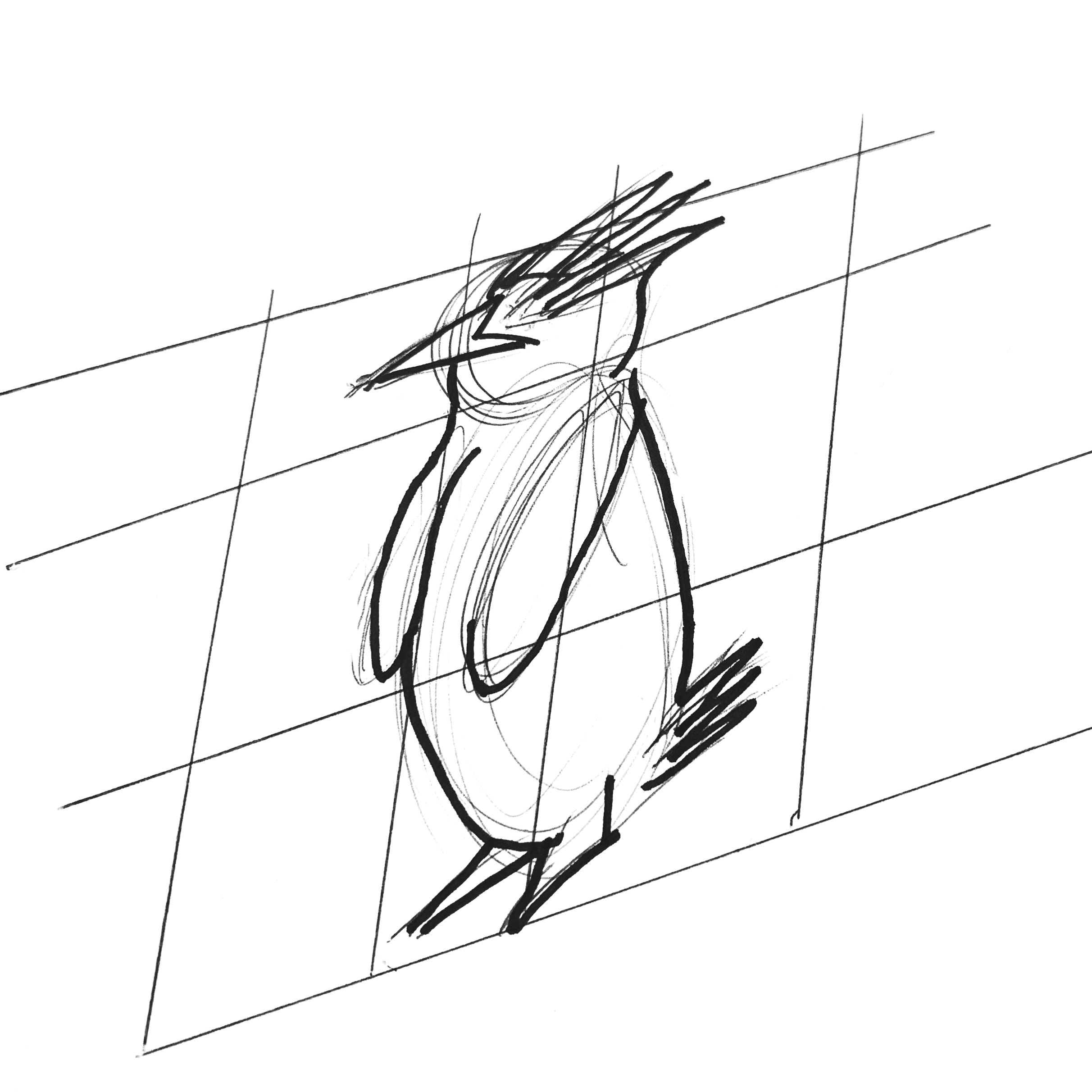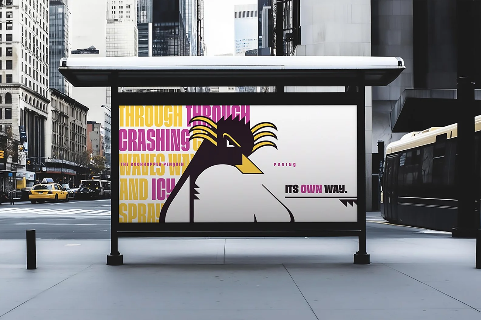 Representing the rockhopper penguin through both its physical traits and personality traits, I had a goal of communicating all of these aspects in a visual manner that felt reminiscent of late 20th century punk trends and rebelliousness.