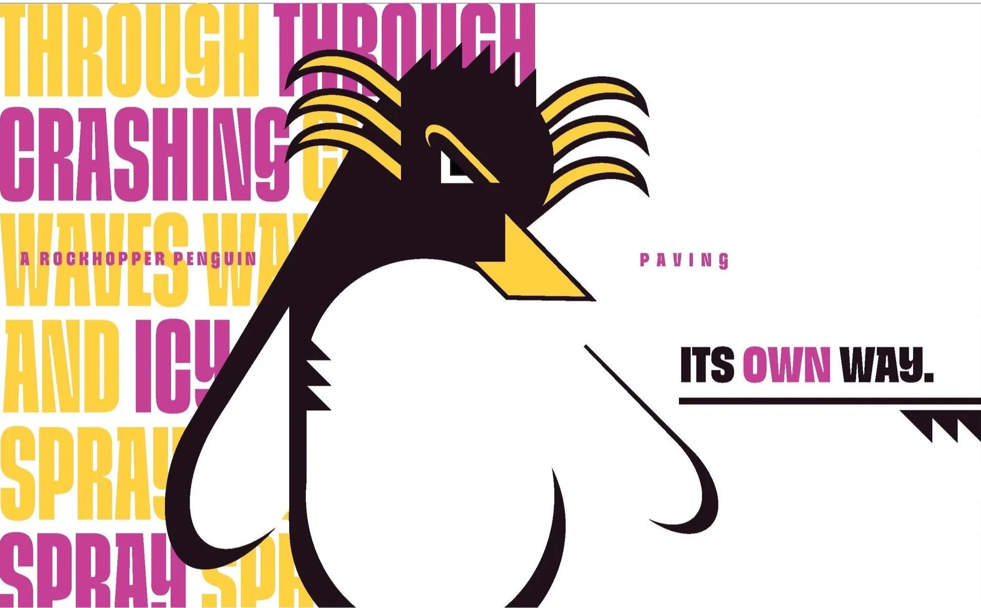 “Through crashing waves and Icy spray the rockhopper penguin paves its own way…”