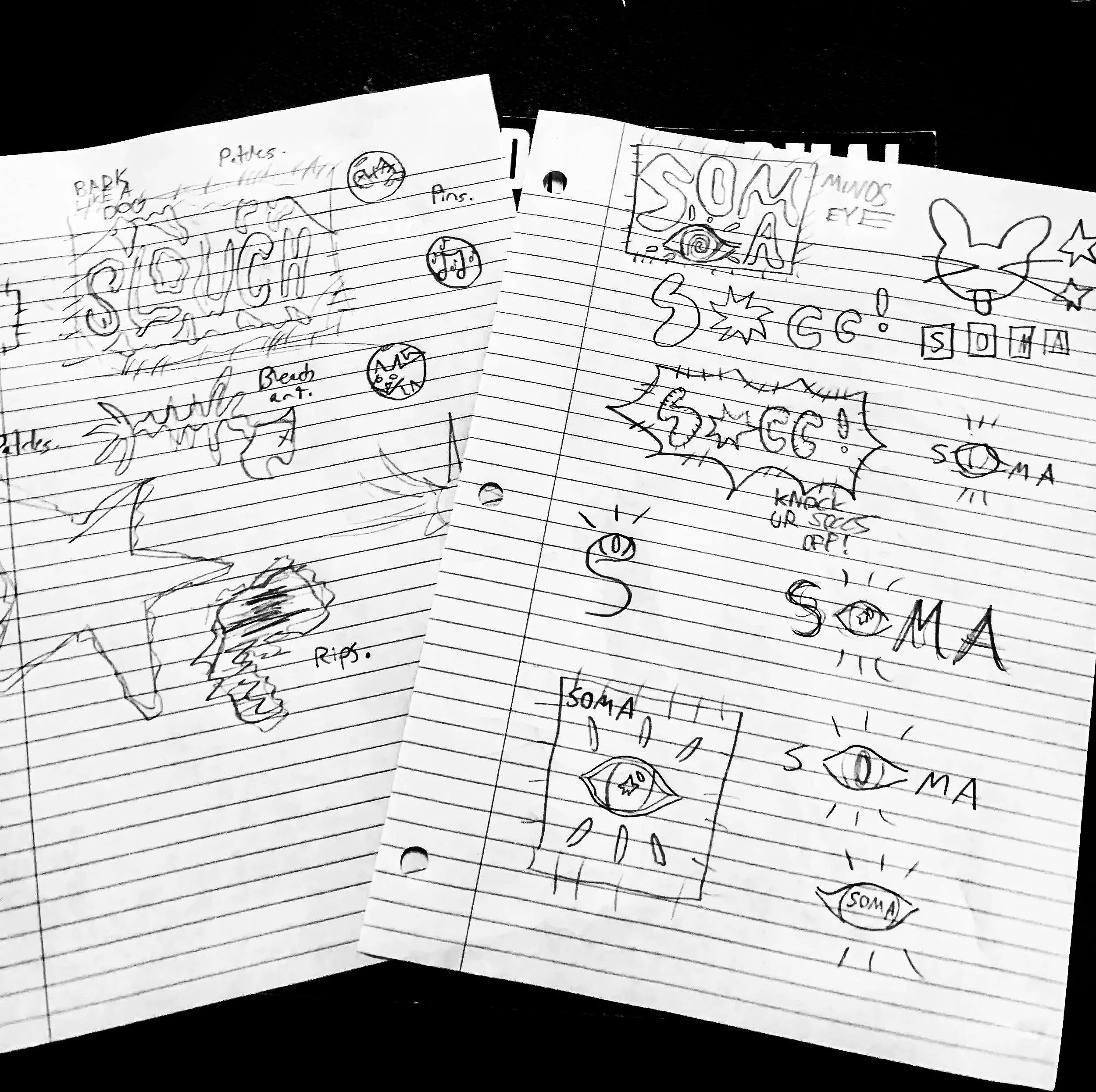 Continuing with the DIY, street art aesthetic, I decided to create personalized logomarks for each band performing based on the research I had done on them prior. Beginning with pencil sketches, I eventually inked and scanned each design.